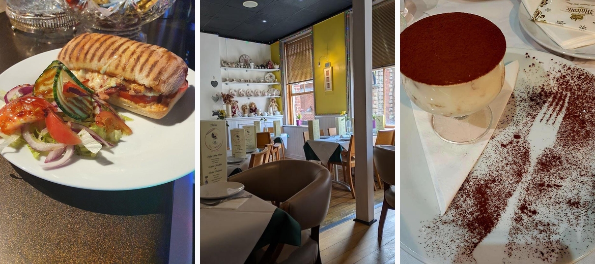 Had some spare time so we went to explore Stockport. Discovered this cafe after looking up the long flights of stairs with a set of tables and chairs in the middle. Went to check it out - the menu looked good and it was busy inside. We ordered spicy meatballs and mozzarella ciabatta with salad (£4.95), Cajun chicken fillet goujons (£7.60), regular latte (£2.40) and a pot for one tea (£2.20). Food and drink came swiftly. They were amazing both the flavours and the presentation. My husband was happy that there was a kick to the spicy meatballs and the bread with the cajun chicken was garlic bread. Whilst I loved the cheesiness of the mozzarella and the super soft ciabatta bread. Both were decent portion size at a very reasonable price. Staff (a family, I assume) were very friendly and attentive. Highly recommend this place. Their pasta looked very appealing after seeing other people having it. We'll definitely come back to try them next time. Ciao!
