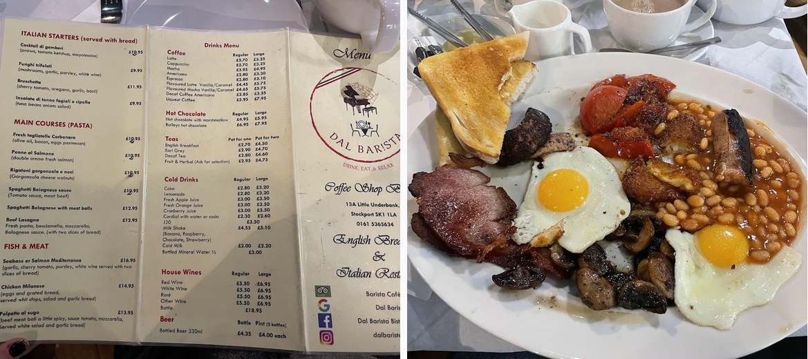 Dal Barista - Coffee Bar And Bistro is a hidden gem nestled in Stockport, inviting customers to enjoy exceptional Italian meals and warm hospitality. Known for its cosy and trendy atmosphere, this bistro offers a place to unwind over a great cup of coffee or indulge in hearty pasta dishes. With a diverse menu that dares to cater to every taste, from breakfast delights to signature dishes, Dal Barista is a local favourite for good reason. The combination of authentic cuisine, friendly service, and a welcoming vibe makes it an ideal spot for solo diners and groups alike. Best of all, with reasonable prices between £10 and £20, it provides excellent value for your money.
