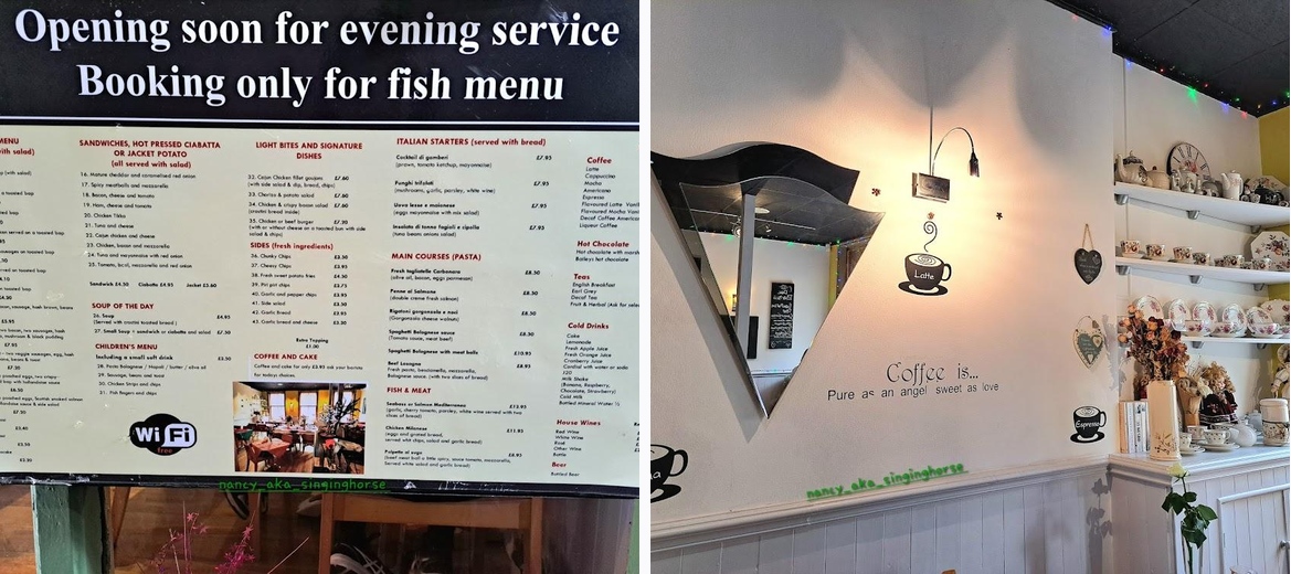 Lunch date with my wife, The service was good, we were given a reasonable amount of time to view the menu before the front of house man came to take a drink order while we decided what to order. The menu is ample with small to larger meals available, ranging from breakfast to full Italian meals to choose from, the waiting staff went through the specials available soups and mains. The man serving us had a strong accent so wasn't quite sure of a few bits of what was said. No big issue though, we ordered our food which arrived after a short time, the food was well presented and very tasty I had the chicken and bacon mozzarella sandwich with side salad, and a side order of garlic and pepper chips, my wife chose the vegetable soup and had a chicken and bacon w/o mozzarella ciabatta both of us were really pleased with our food. Thank you for a nice meal in a lovely little café.